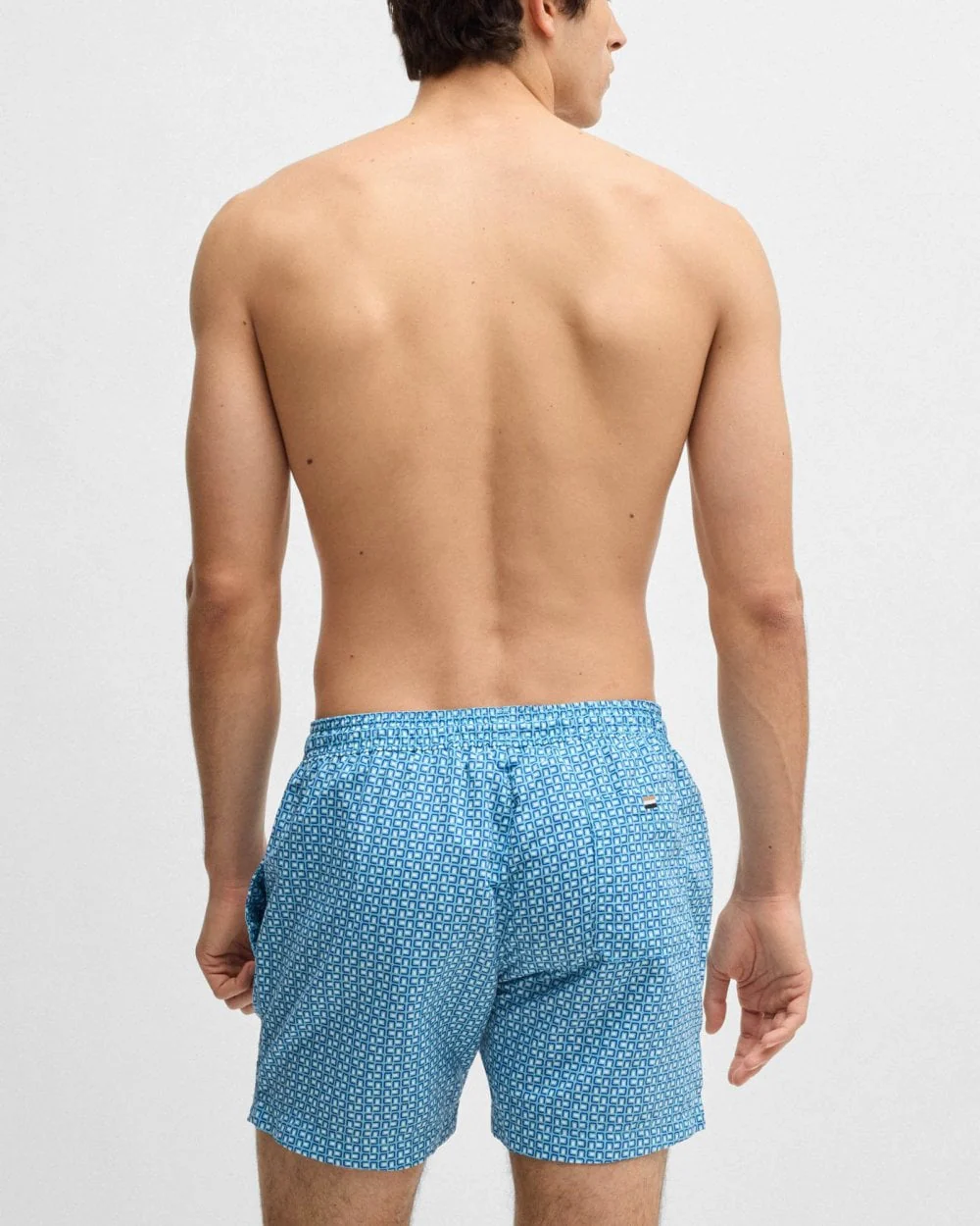 BOSS Orange Vibe Mens Logo-Label Swim Shorts with Seasonal Pattern in Light/Pastel Blue 455